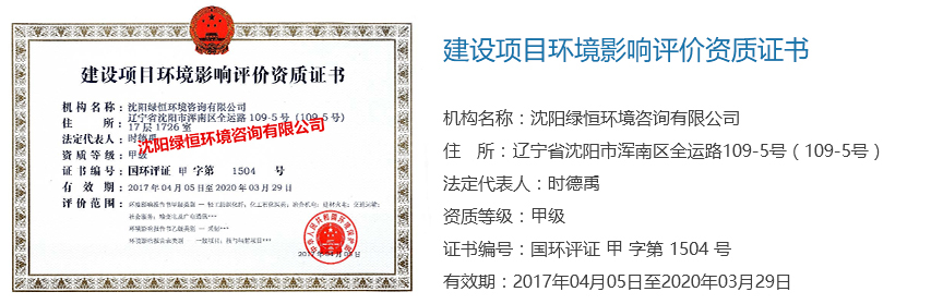 綠恒公司具有環(huán)境保護(hù)部核發(fā)的環(huán)境影響評(píng)價(jià)甲級(jí)資質(zhì)證書(國(guó)環(huán)評(píng)證甲字第1504號(hào)),環(huán)境影響評(píng)價(jià)范圍為輕工紡織化纖、化工石化醫(yī)藥、冶金機(jī)電、建材火電、交通運(yùn)輸、社會(huì)服務(wù)、輸變電及廣電通訊環(huán)境影響報(bào)告書甲級(jí)類別;采掘環(huán)境影響報(bào)告書乙級(jí)類別;一般項(xiàng)目和核與輻射項(xiàng)目環(huán)境影響報(bào)告表類別。